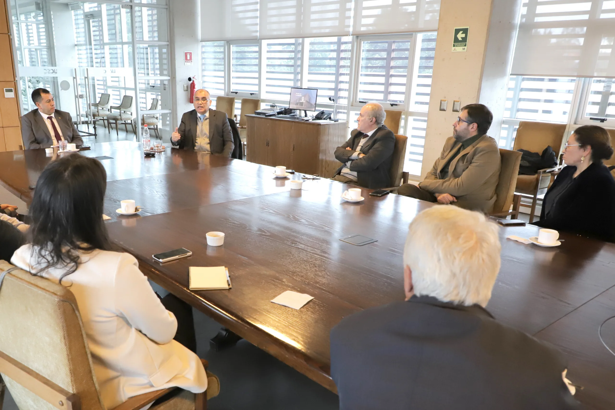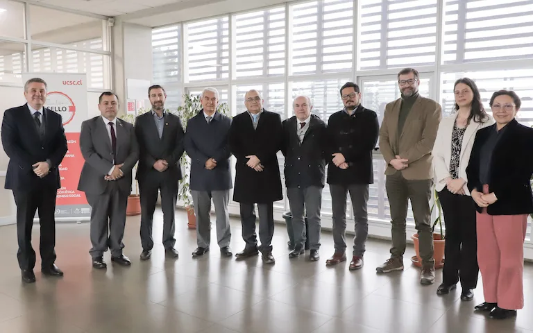 Tras la exposición, el Vicepresidente Ejecutivo del CRUCH sostuvo un encuentro con el Rector de la UCSC, los Decanos y el Director del Instituto Tecnológico, en el Salón del Consejo Superior.