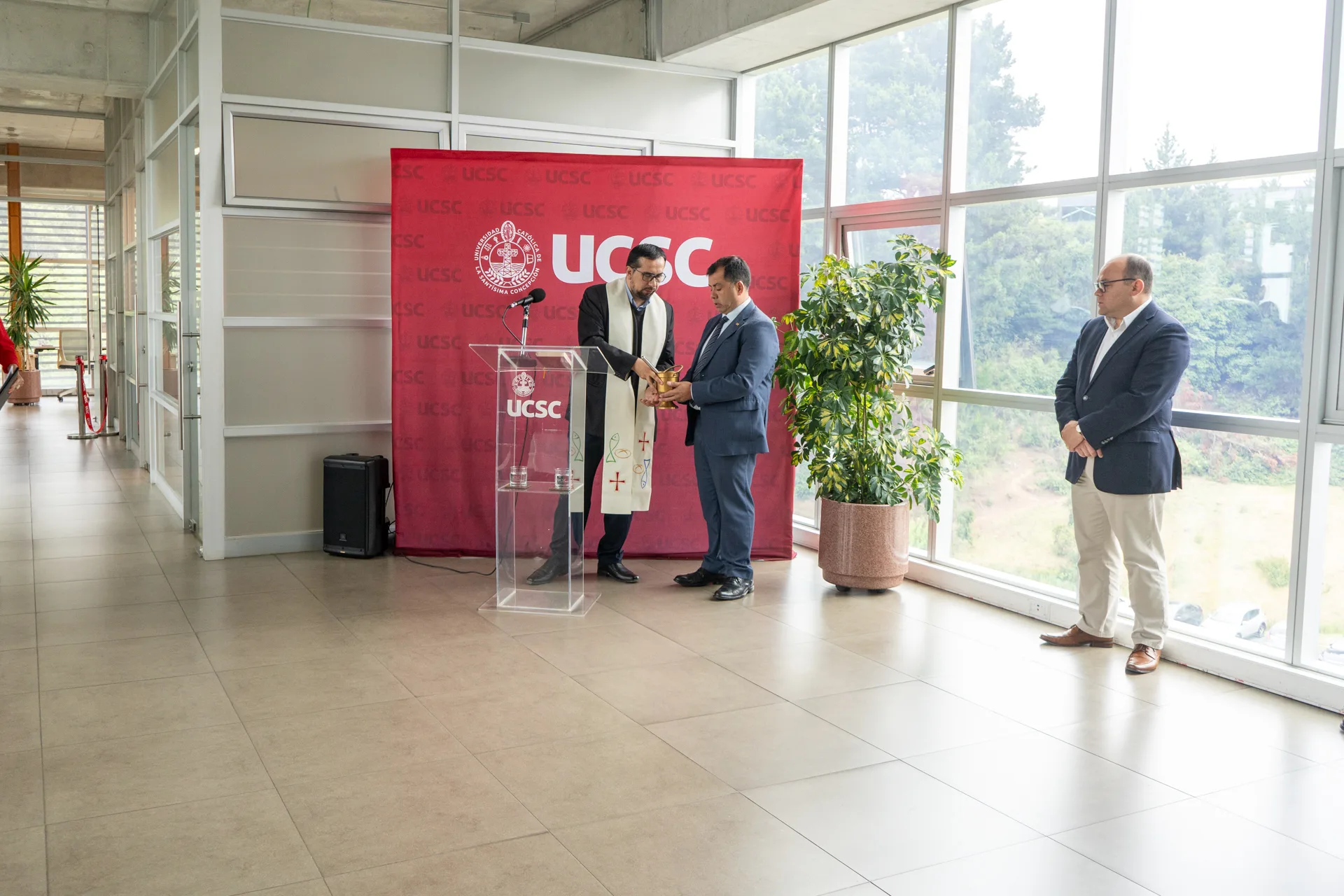 La inauguración contó con la bendición del Padre Víctor Álvarez, así como las palabras del Rector Dr. Cristhian Mellado, y de la Directora de Relaciones Institucionales y Vinculación, Dra. Lorena Retamal. En la instancia también participaron como invitados autoridades y miembros extranjeros de la Comunidad Universitaria.