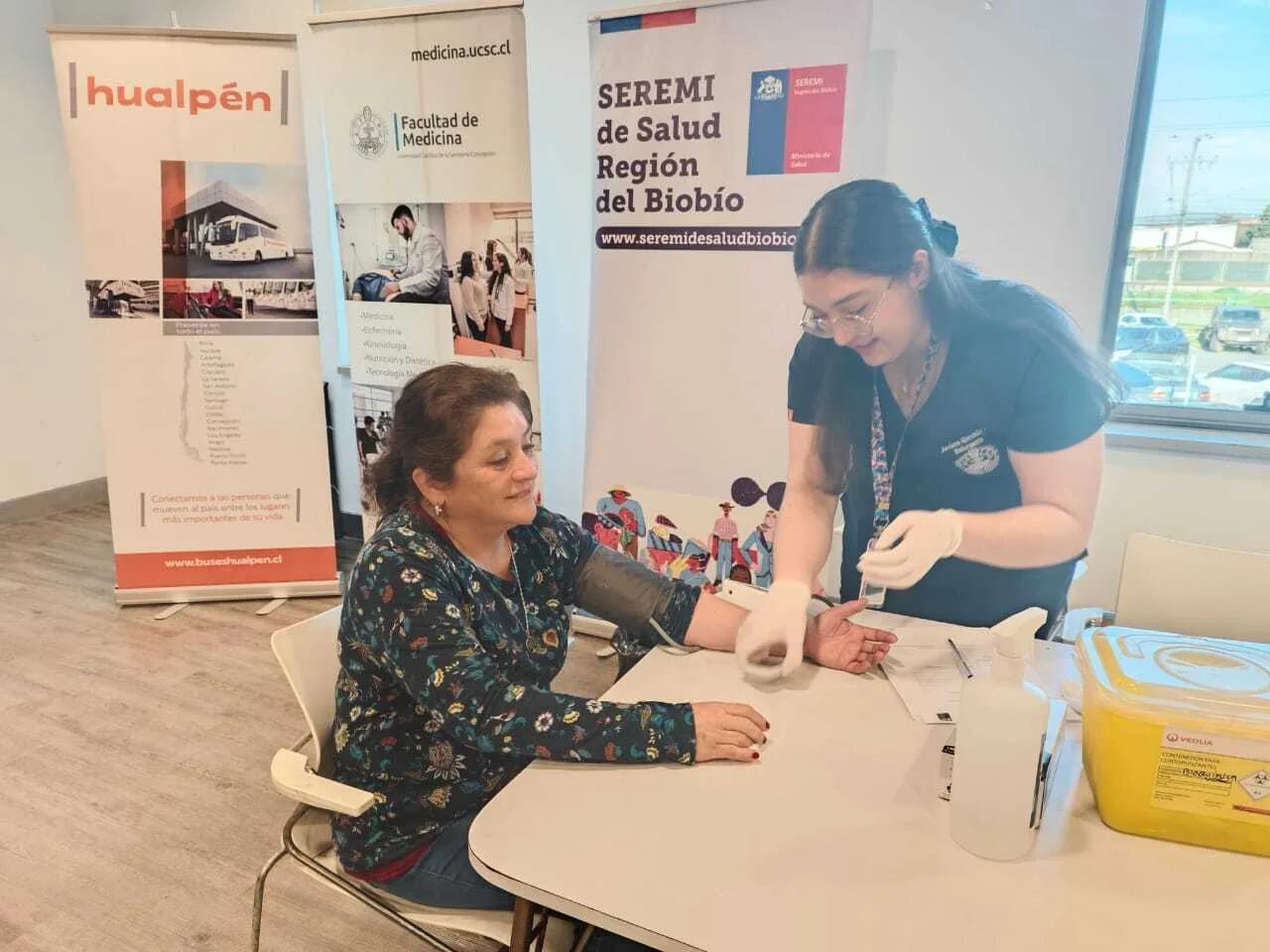 Entre ellas, un Operativo de Salud, organizado en colaboración con el Programa de Salud Cardiovascular de la Seremi de Salud del Biobío. Este procedimiento estuvo dirigido a 55 trabajadores de la empresa Buses Hualpén, quienes recibieron una consejería nutricional, evaluación antropométrica, presión arterial y glicemia, a cargo de las carreras de Enfermería, Nutrición y Dietética, para así favorecer la prevención temprana de las enfermedades cardiovasculares.